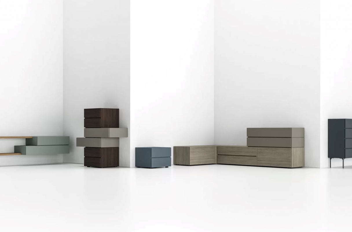 Puoi giocare con le geometrie per creare una camera matrimoniale indimendicabile. Estrema modularità