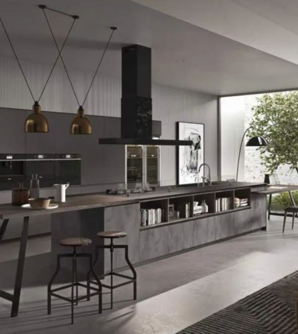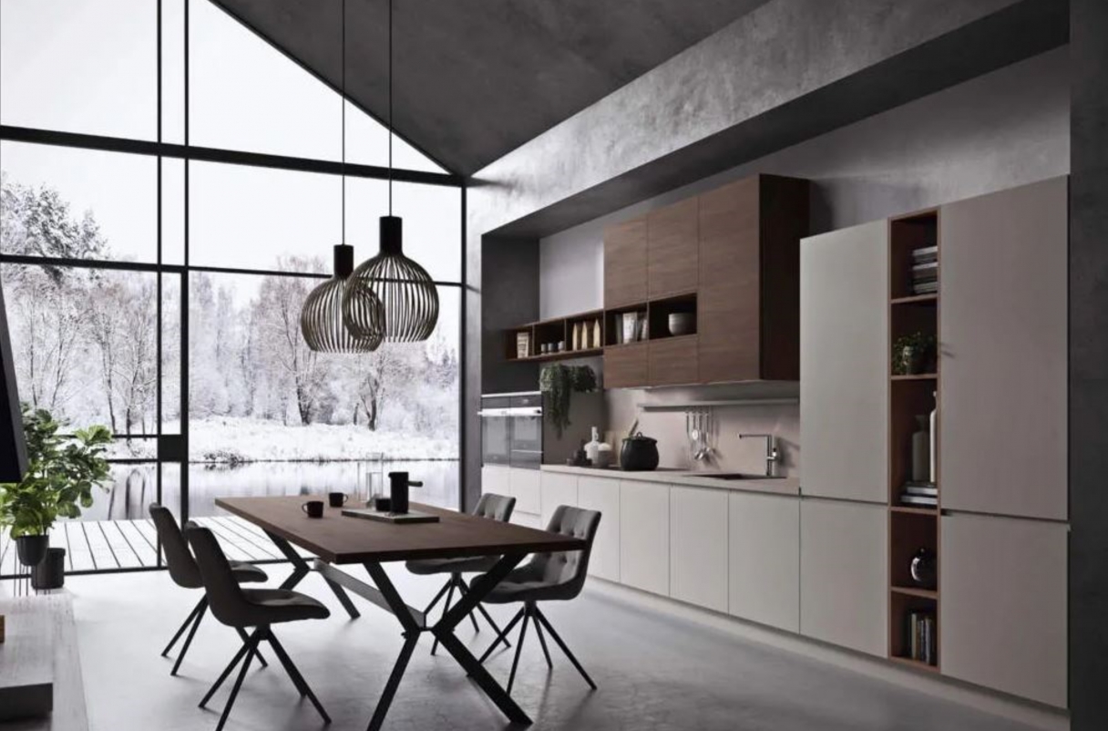 Cucina geometrica, ordinata e senza fronzoli. Questa cucina è dedicata a chi cerca una cucina geometrica, ordinata e senza fronzoli. Ha un’anta liscia, squadrata nei quattro lati, alla quale è possibile applicare diverse tipologie di maniglie esterne, integrate o a gola.