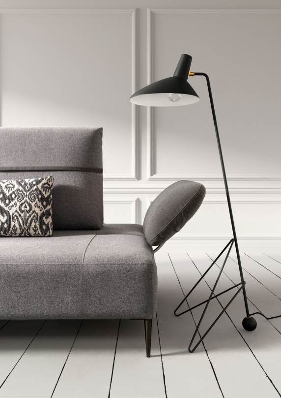 Cuscino schienale con meccanismo poggiatesta a scatti. Linee pulite e semplici, braccioli moderni, lineari, e quei piedini alti che danno un tocco di slancio e leggerezza.