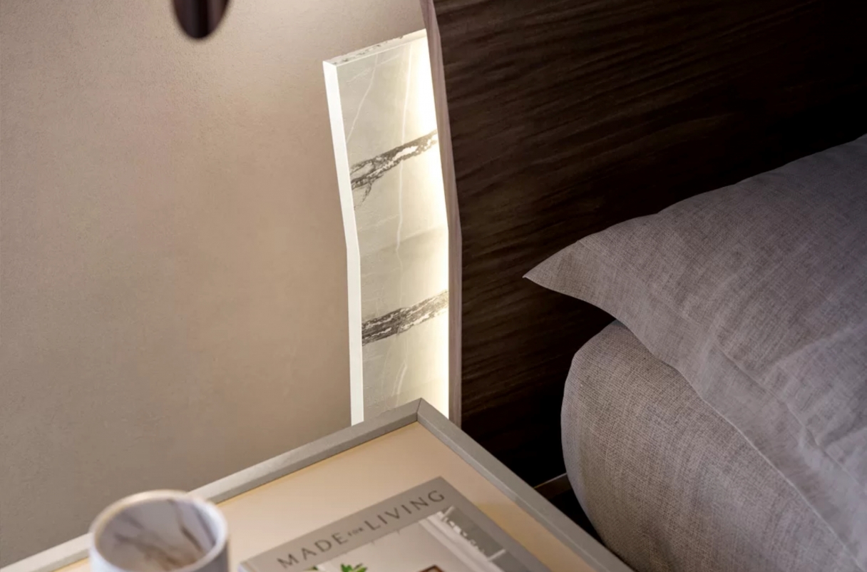 oltre a valorizzare il design del letto, diffonde una luce soffusa che avvolge la stanza