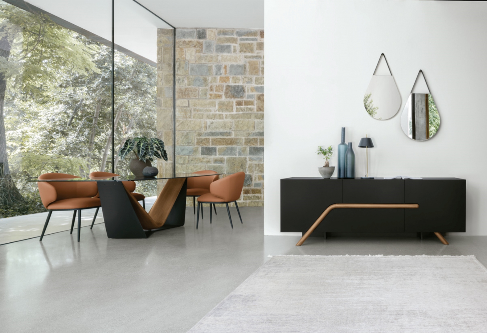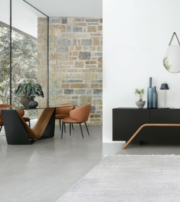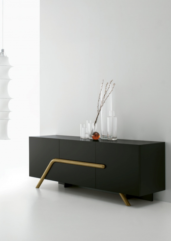 Madia moderna bassa. Una molteplicità di finiture disponibili per materiali diversi.