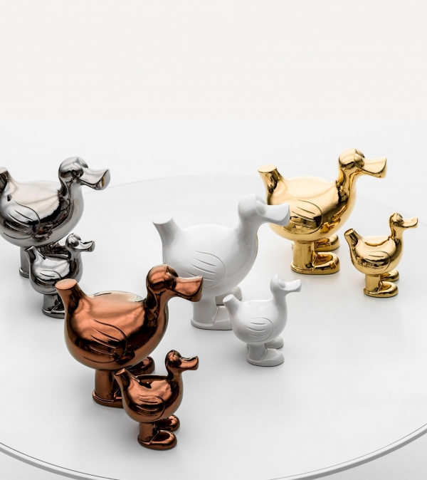 Scultura papera in ceramica, Colore bianco lucido, nero lucido, oro lucido, oro rosa lucido, platino lucido