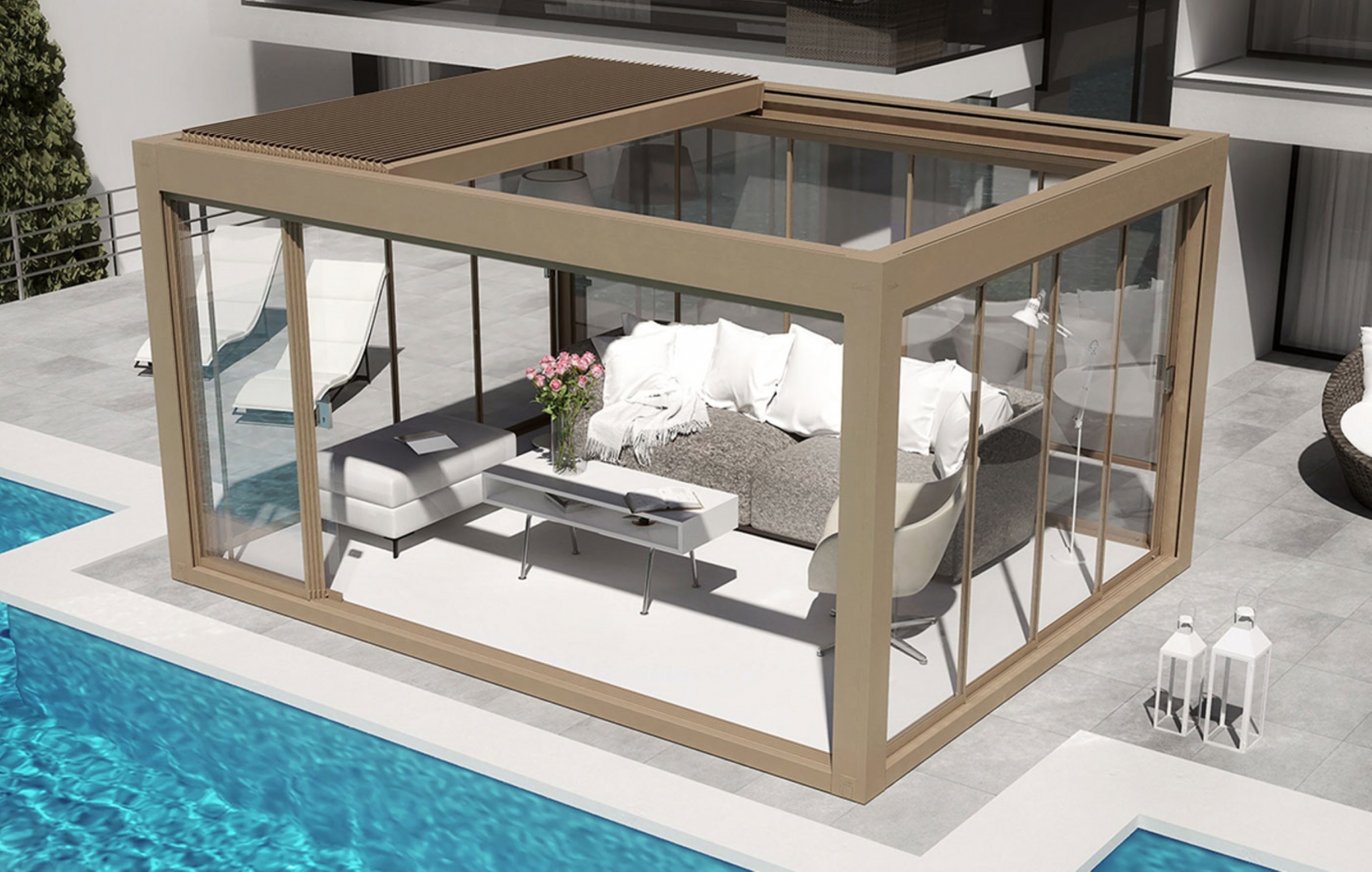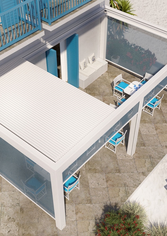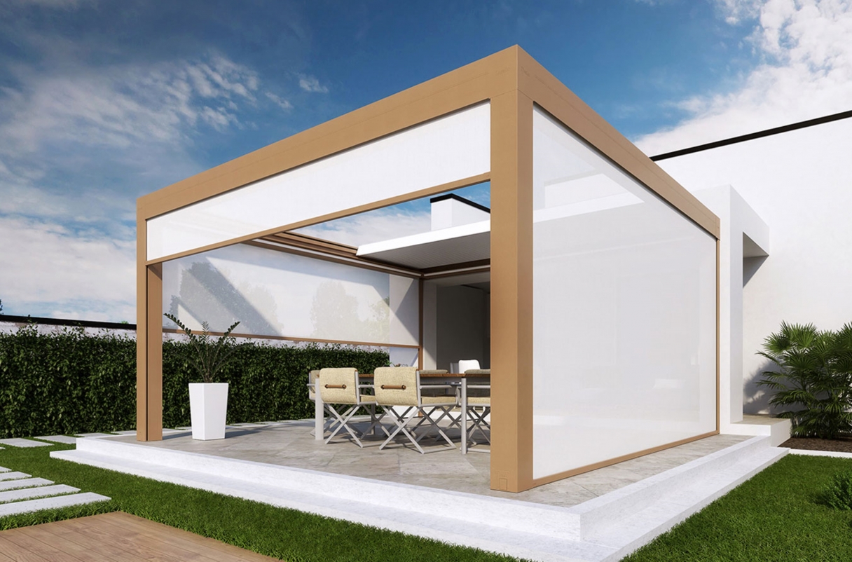 Molteplici configurazioni e accoppiamenti per moduli multipli. Pergola compatibile con impianti domotici