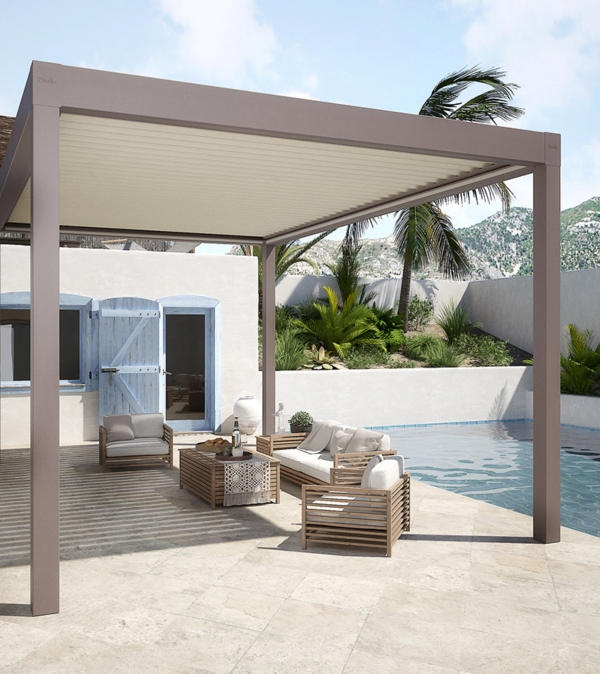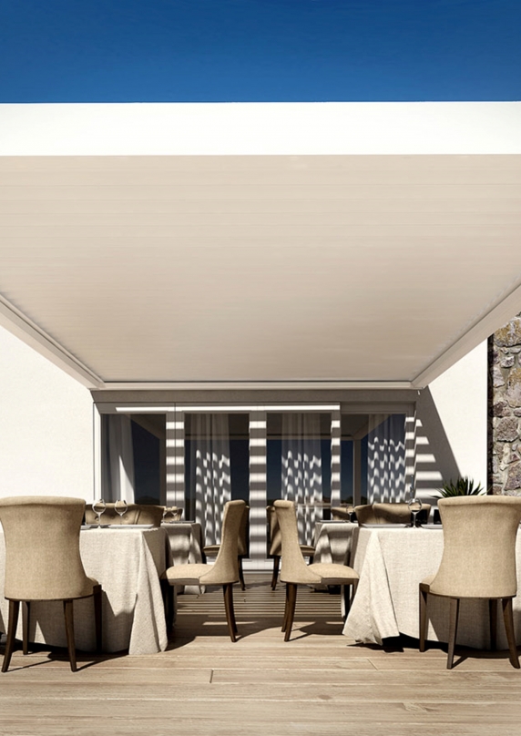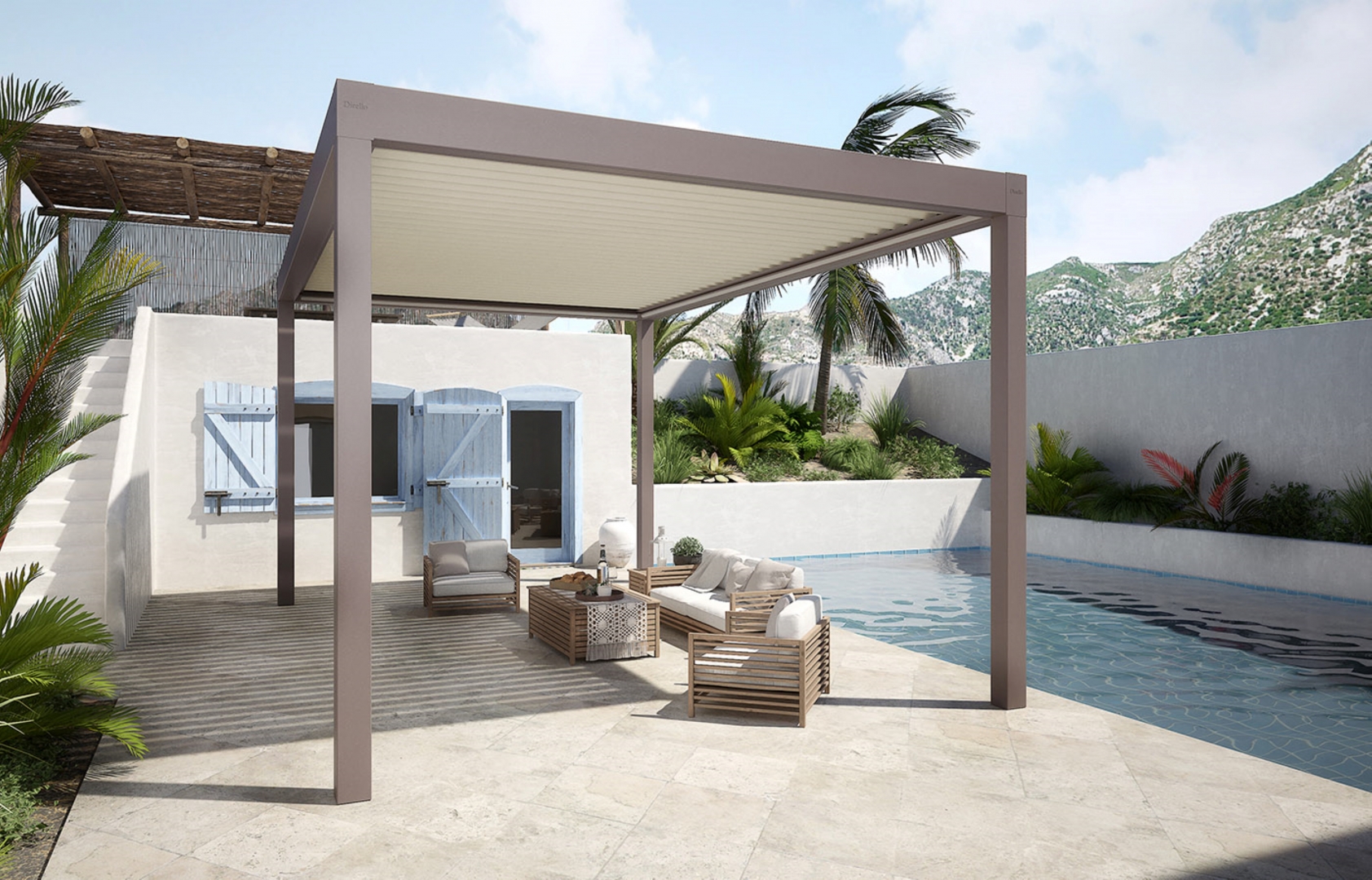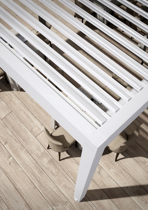 Pergola bioclimatica a lame orientabili orientabili fino a 140° . Zorzi Arredamenti a Camposampiero ed ad Aresgo di San Giorgio delle Pertiche