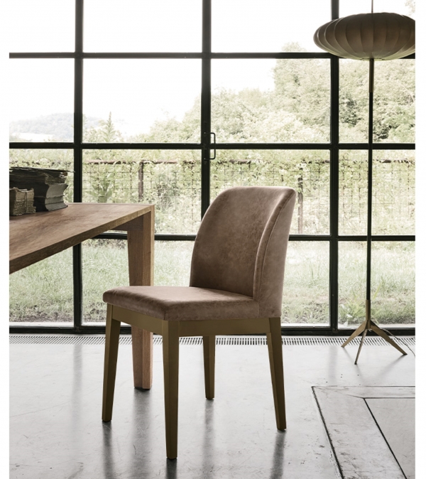 Sedia con struttura in legno con seduta imbottita