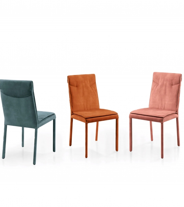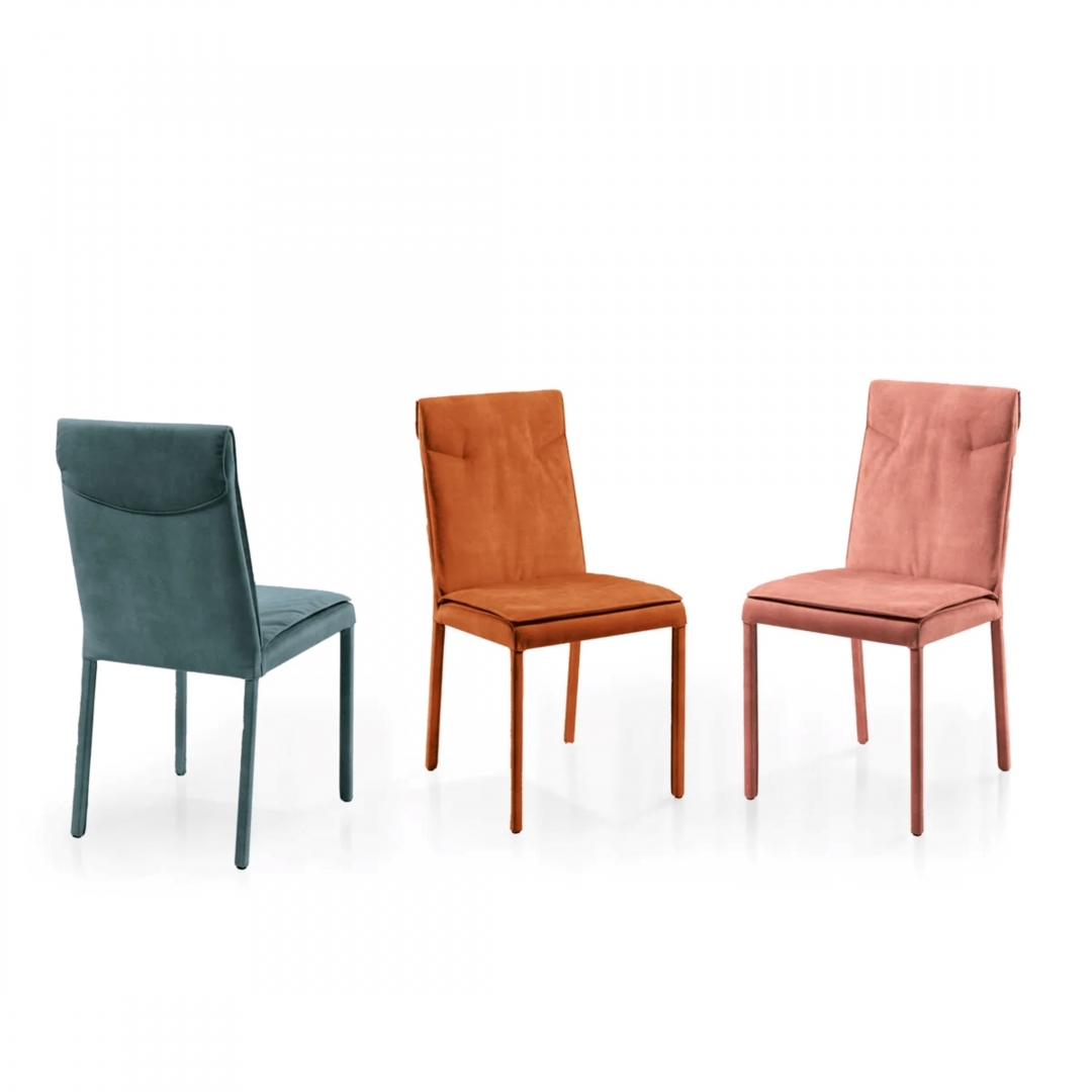 Sedia con struttura in tubo di acciaio quadro. Rivestimento in tessuto o in pelle