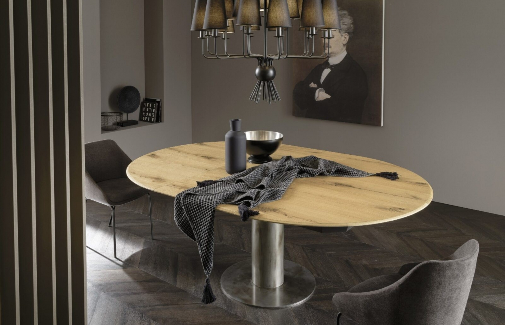 Basamento in acciaio per questo tavolo allungabile